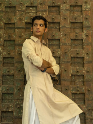Ochre Band collar kurta with Aari work -HSM-02
