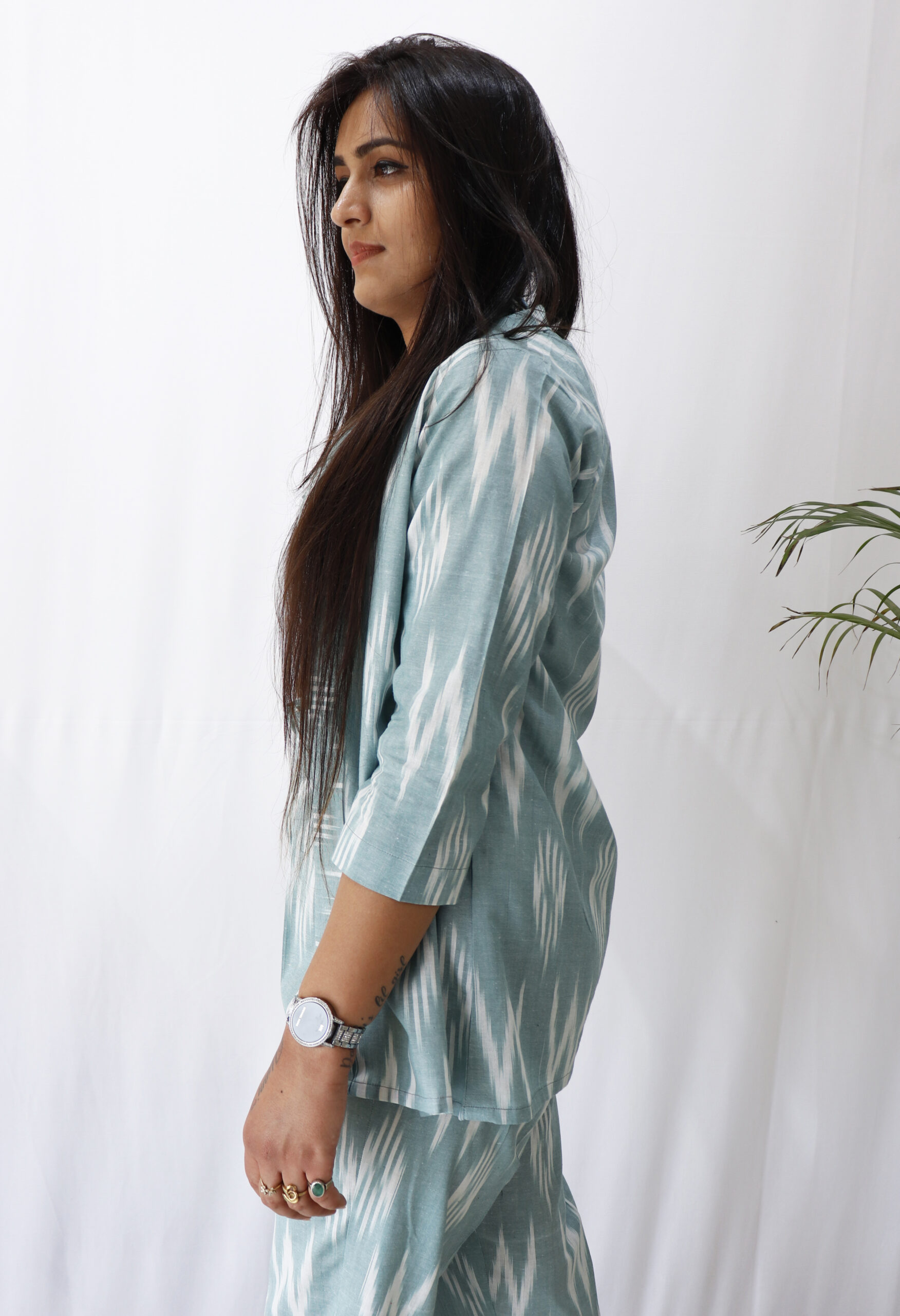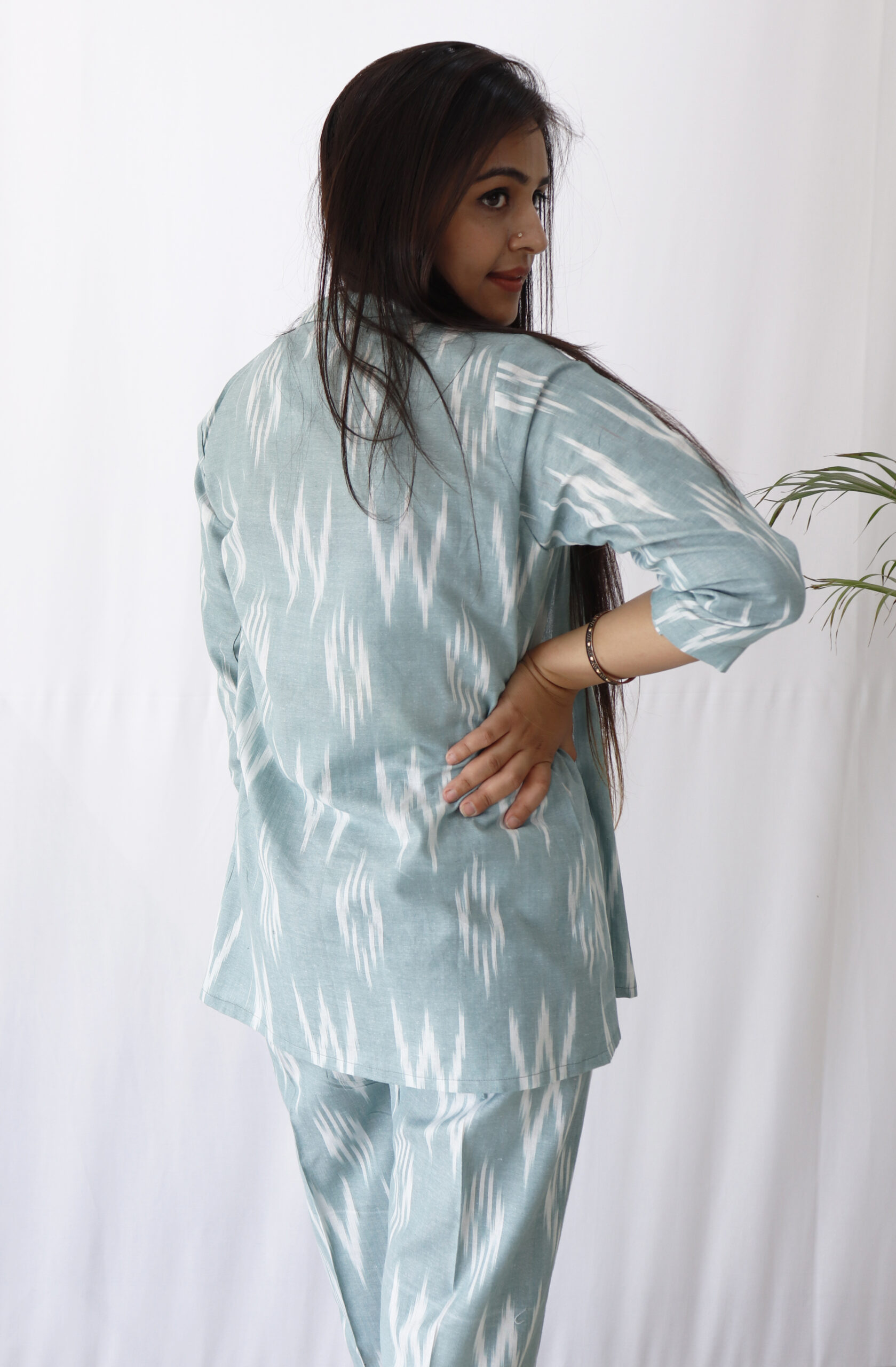 Blue Ikat Co-ord set with Crop Top: Chic Confidence -HS11