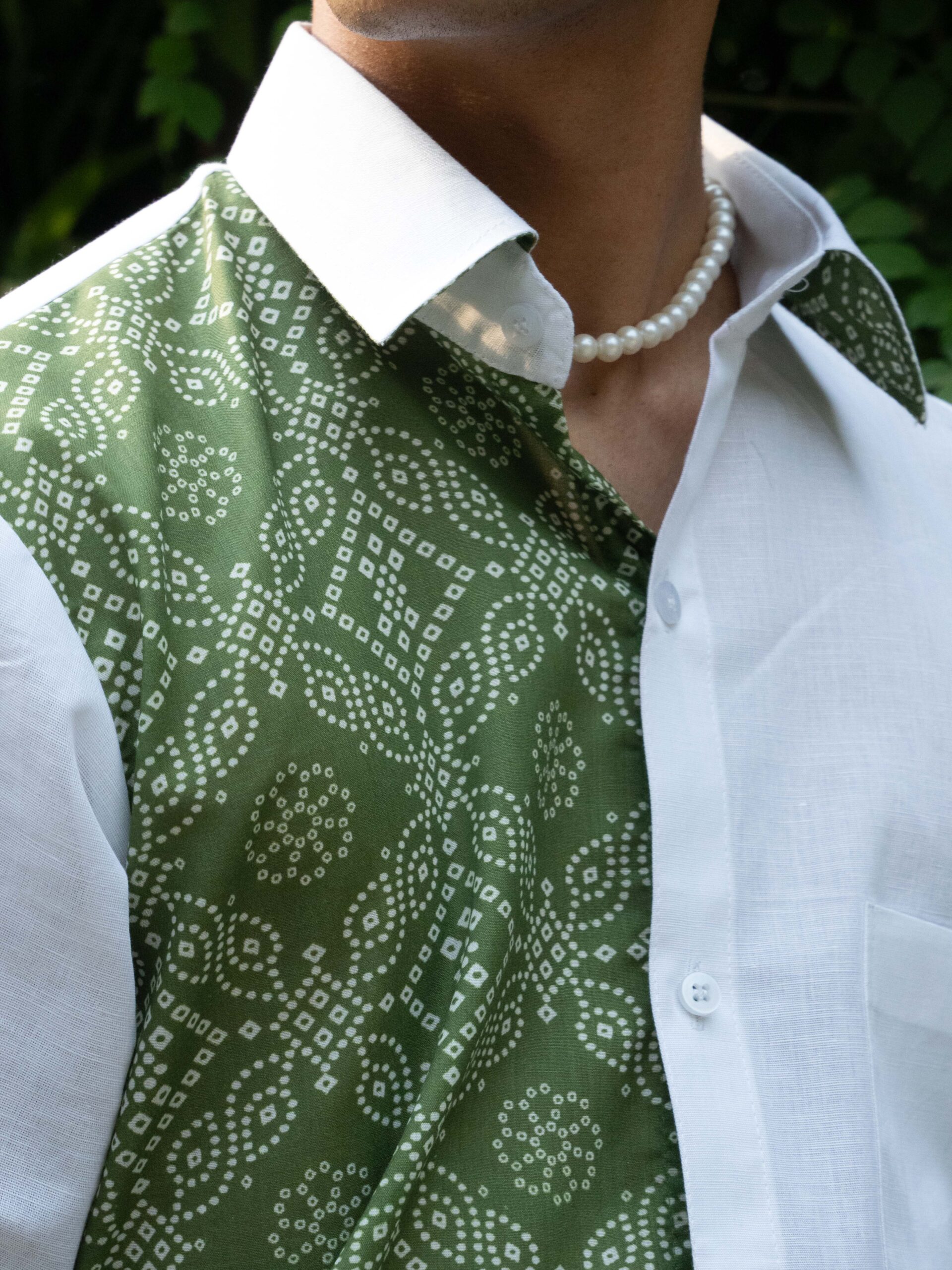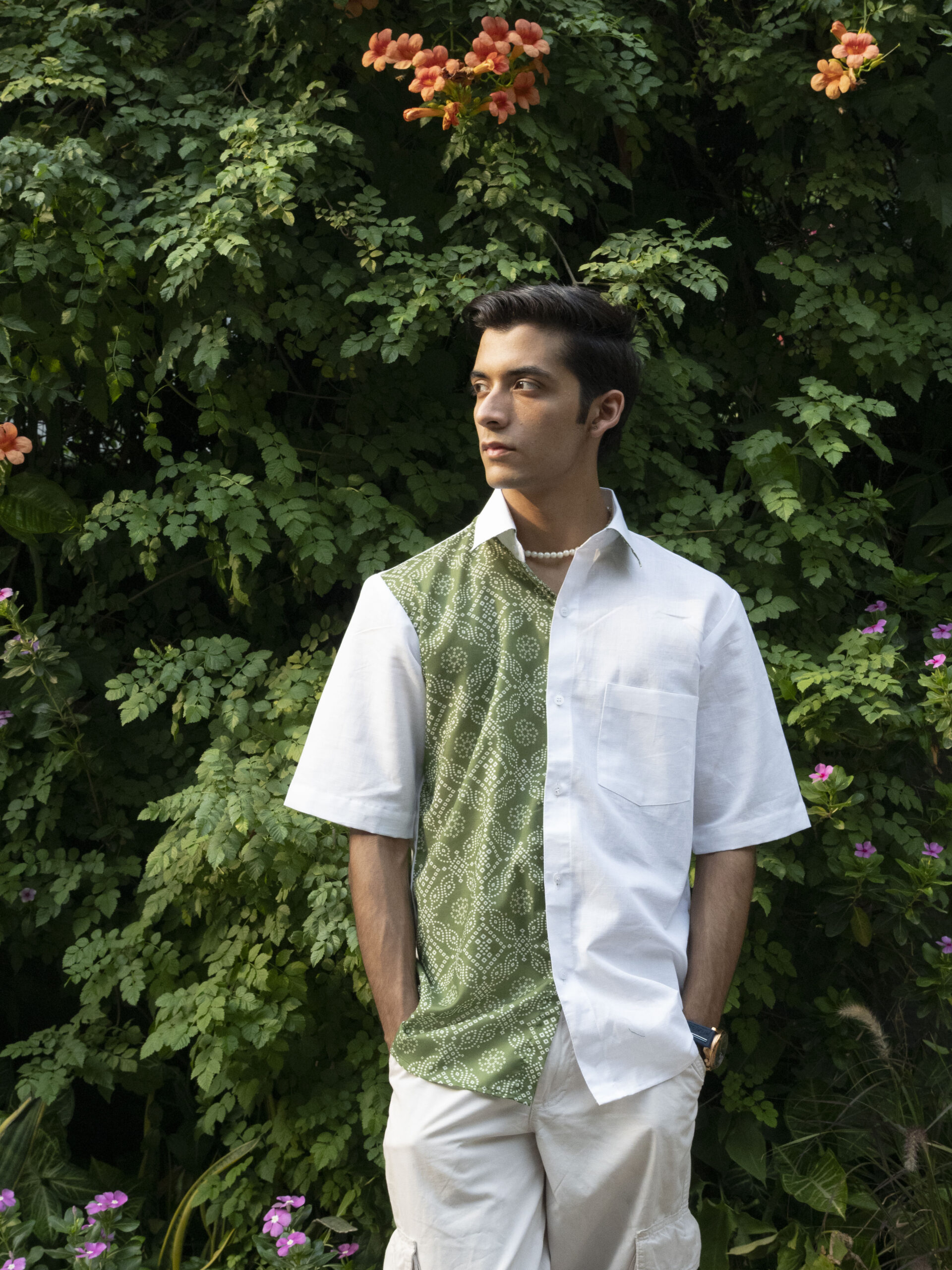 - Colour & Pattern: Half Green Half White details provides a versatile backdrop for the unique box-fit design, making it a standout piece.