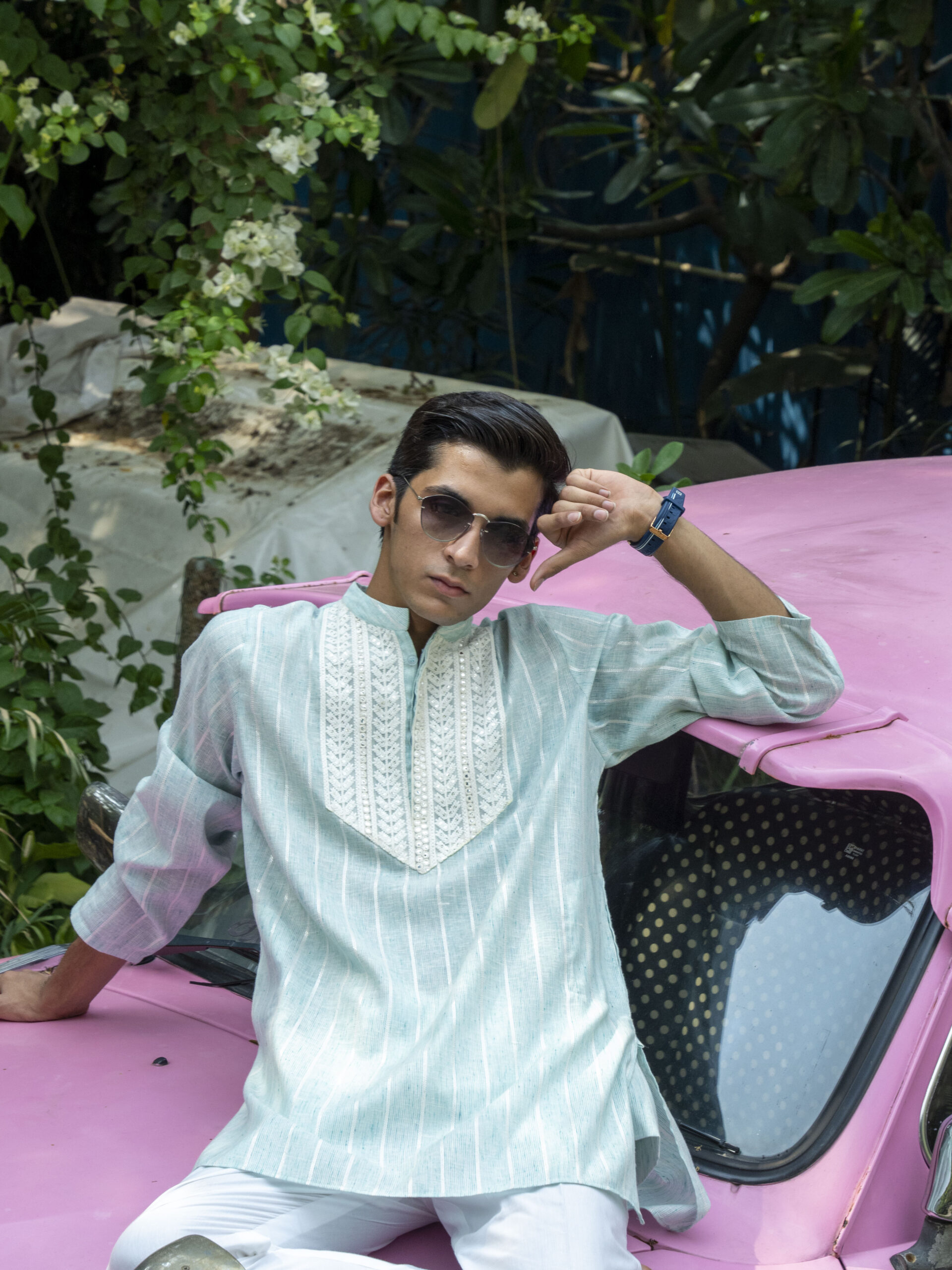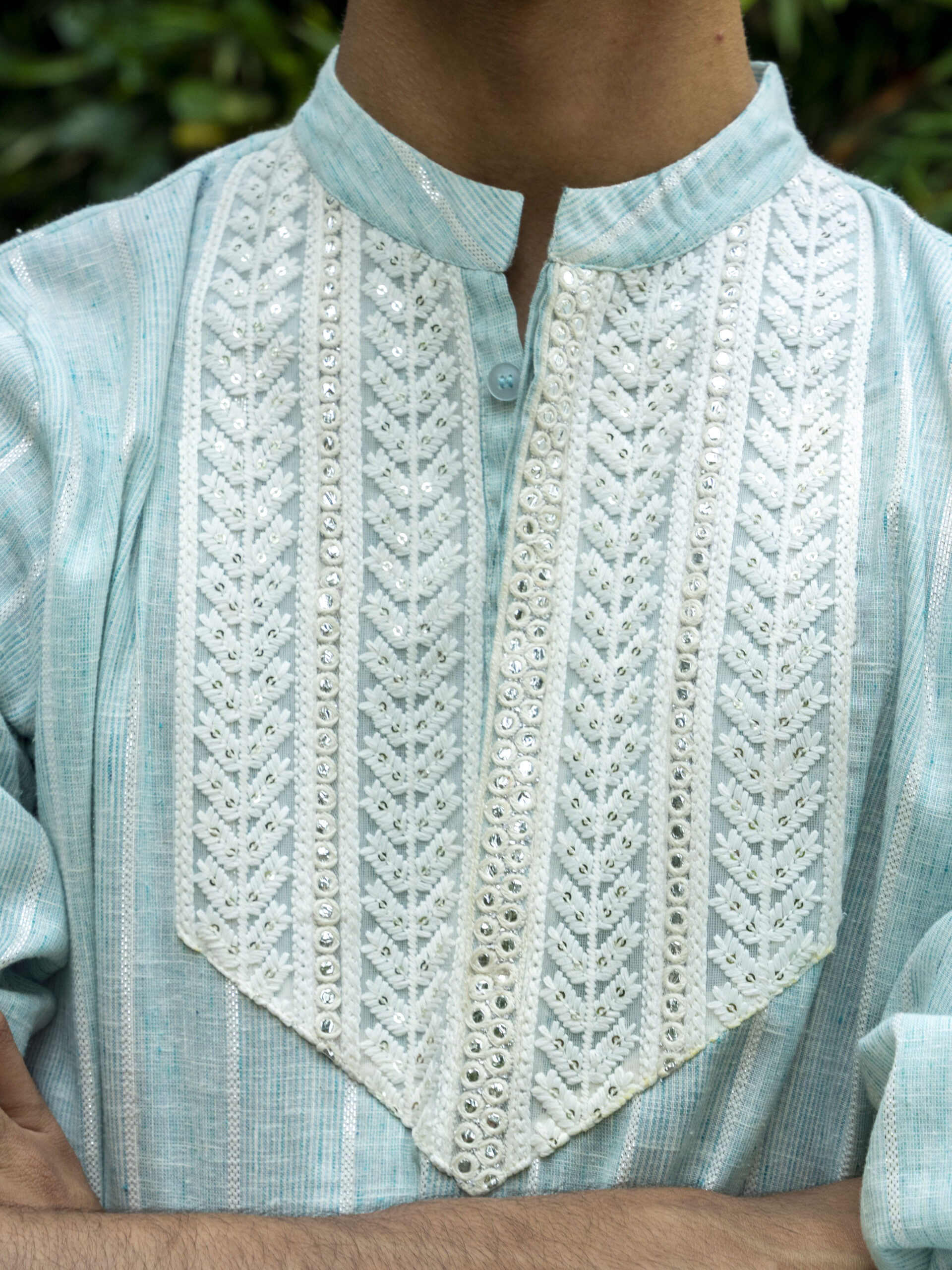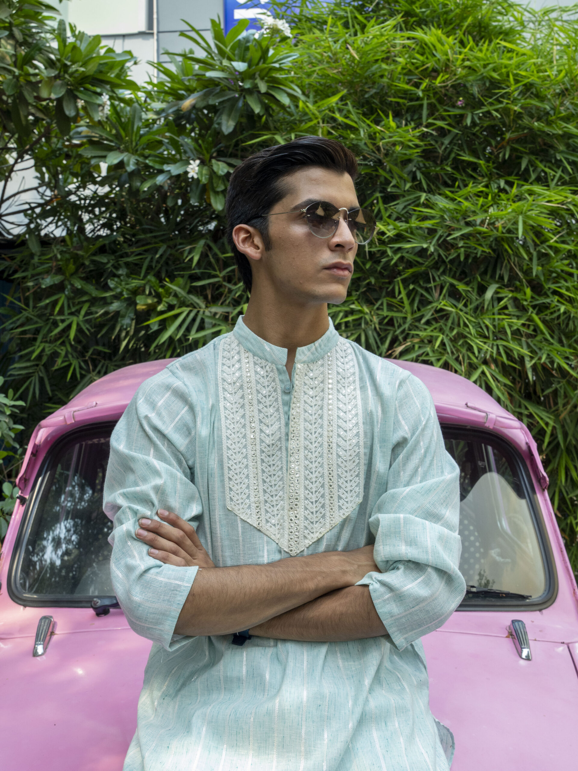 - Fabric: Crafted from pure cotton linen, this kurta offers both comfort and durability, ensuring you stay at ease while making a statement.