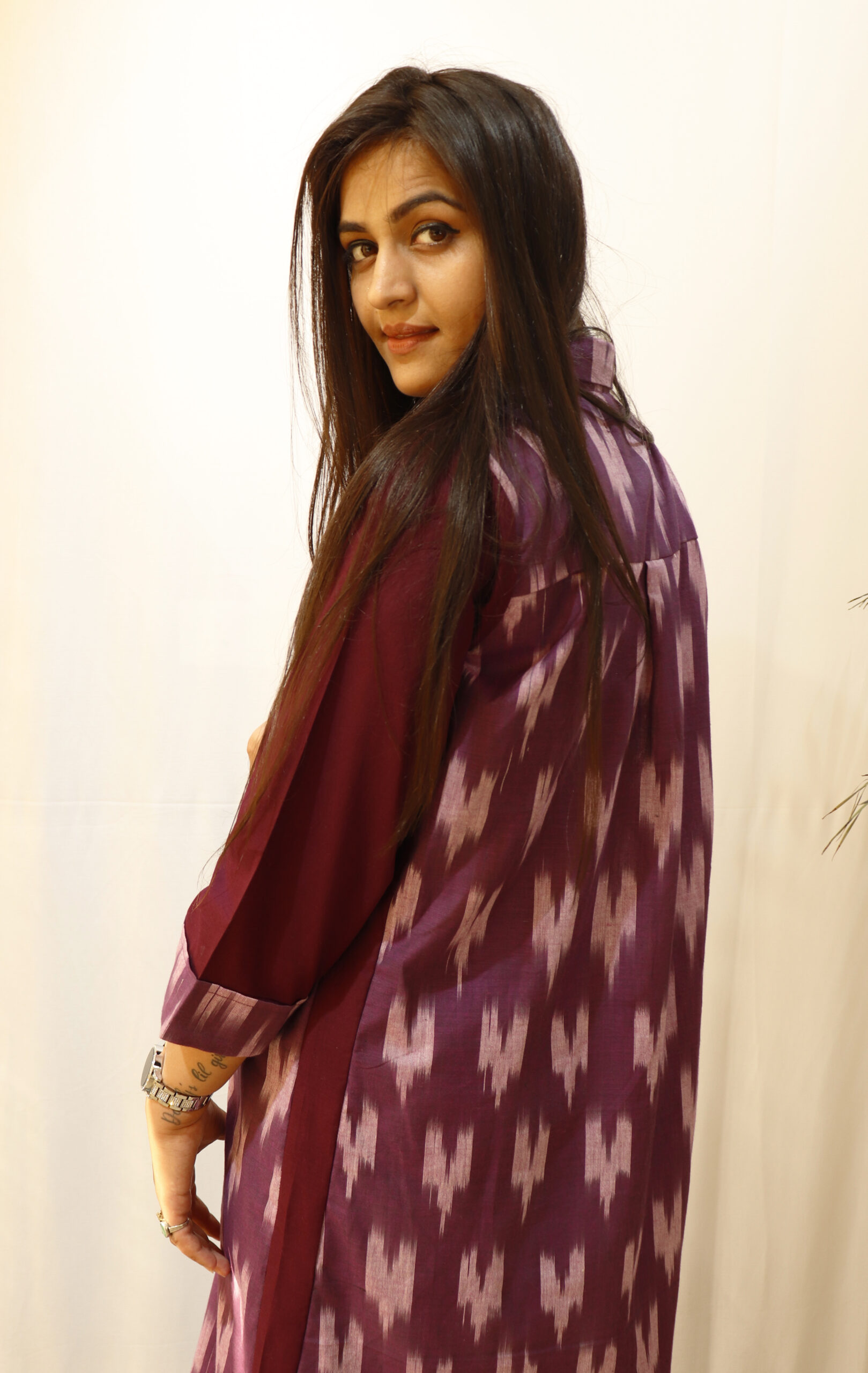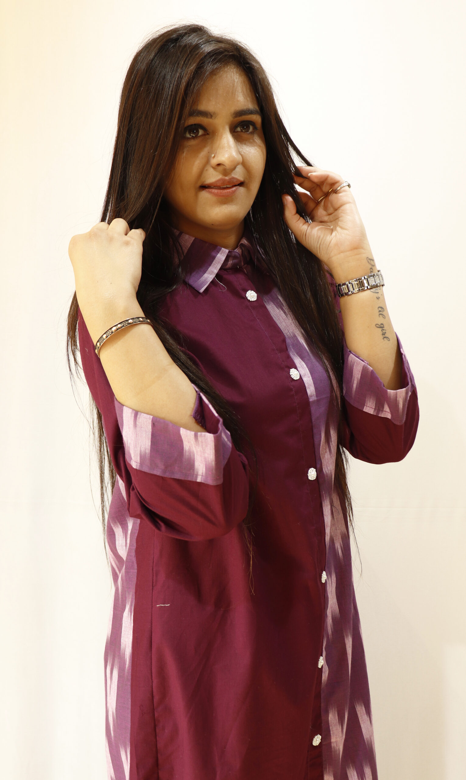 Red Ikat Collar Kurta: A Signature Style -HS08