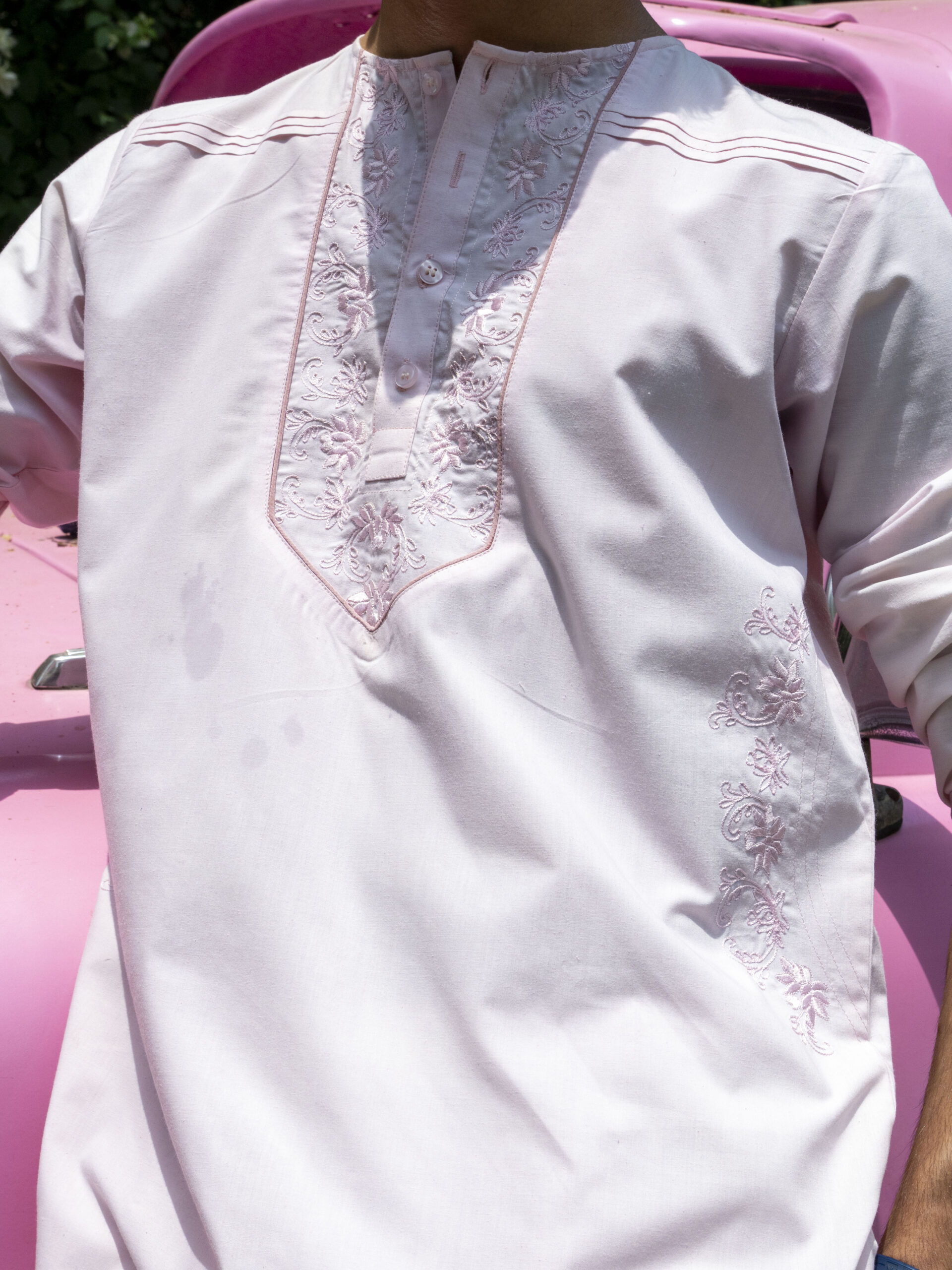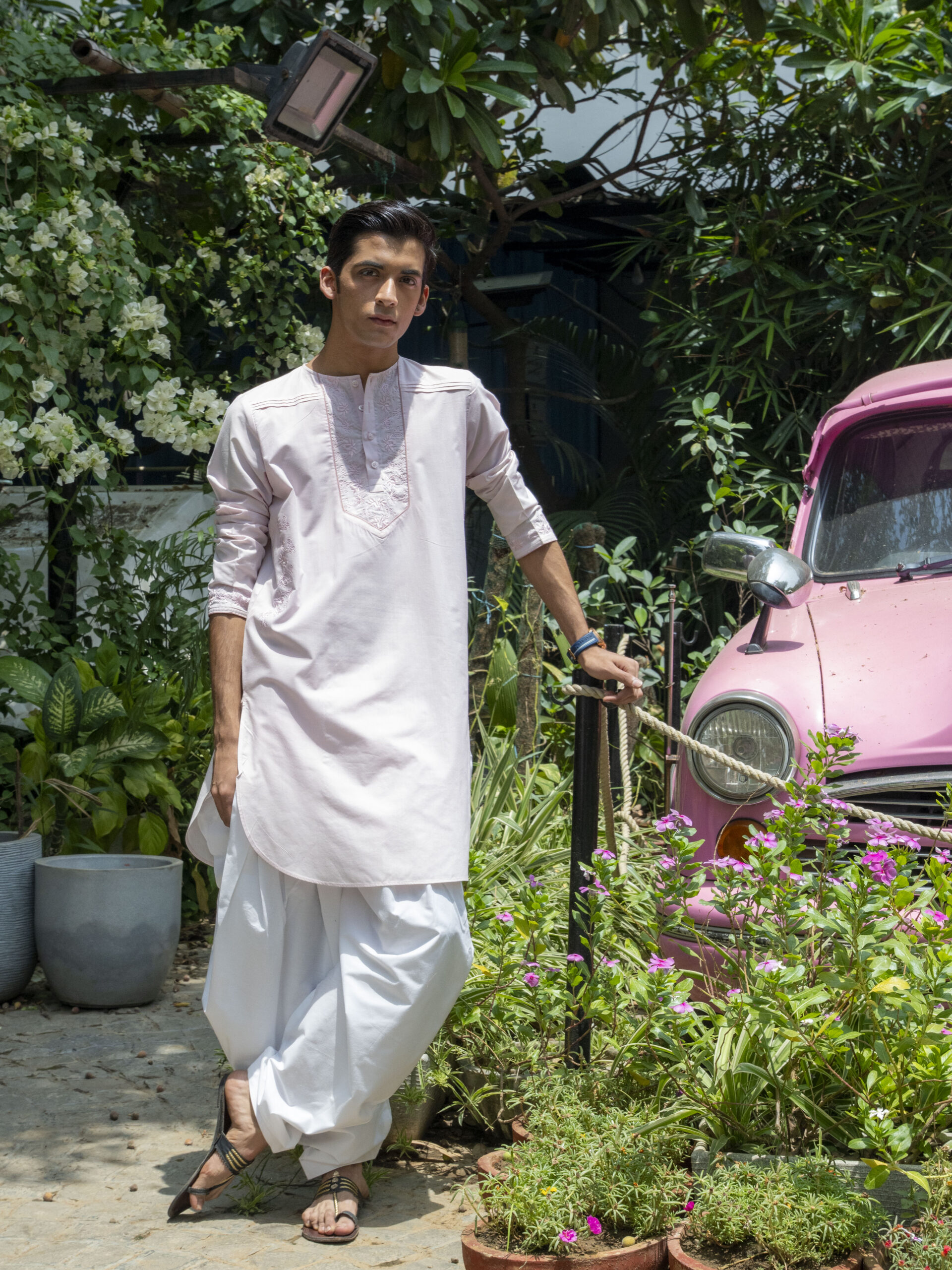 Introducing the Onion Pink Kurta from Hastakshar, a garment that exudes elegance and celebrates the richness of traditional attire with a modern twist. This kurta is a perfect blend of style, comfort, and craftsmanship, designed to add a touch of sophistication to your festive wardrobe.