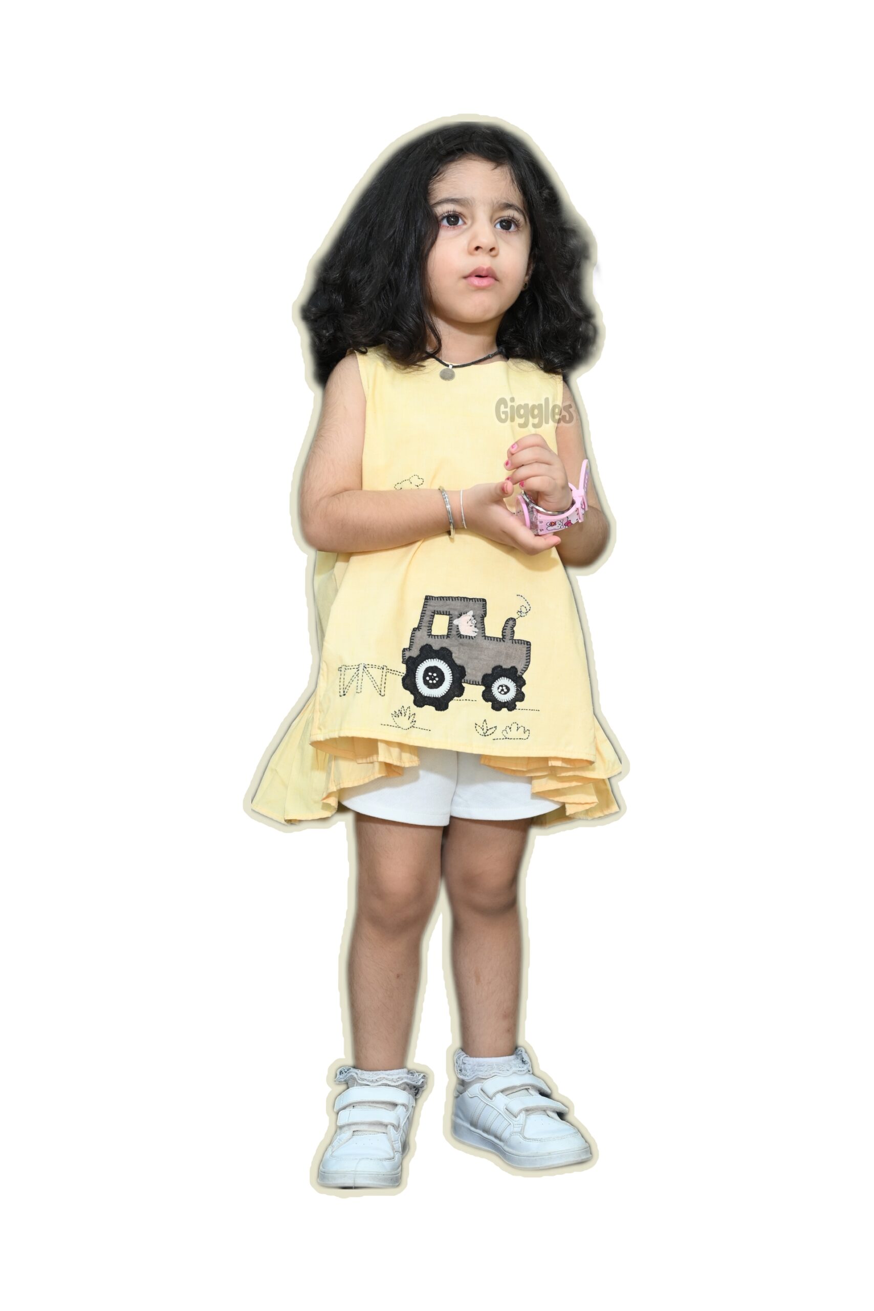 The pure cotton fabric ensures that comfort is never compromised, making it ideal for all the activities a casual birthday party might offer. The sleeveless cut and asymmetric pattern provide a modern twist to the co-ord set, while the pastel yellow color adds a cheerful pop that’s sure to stand out.