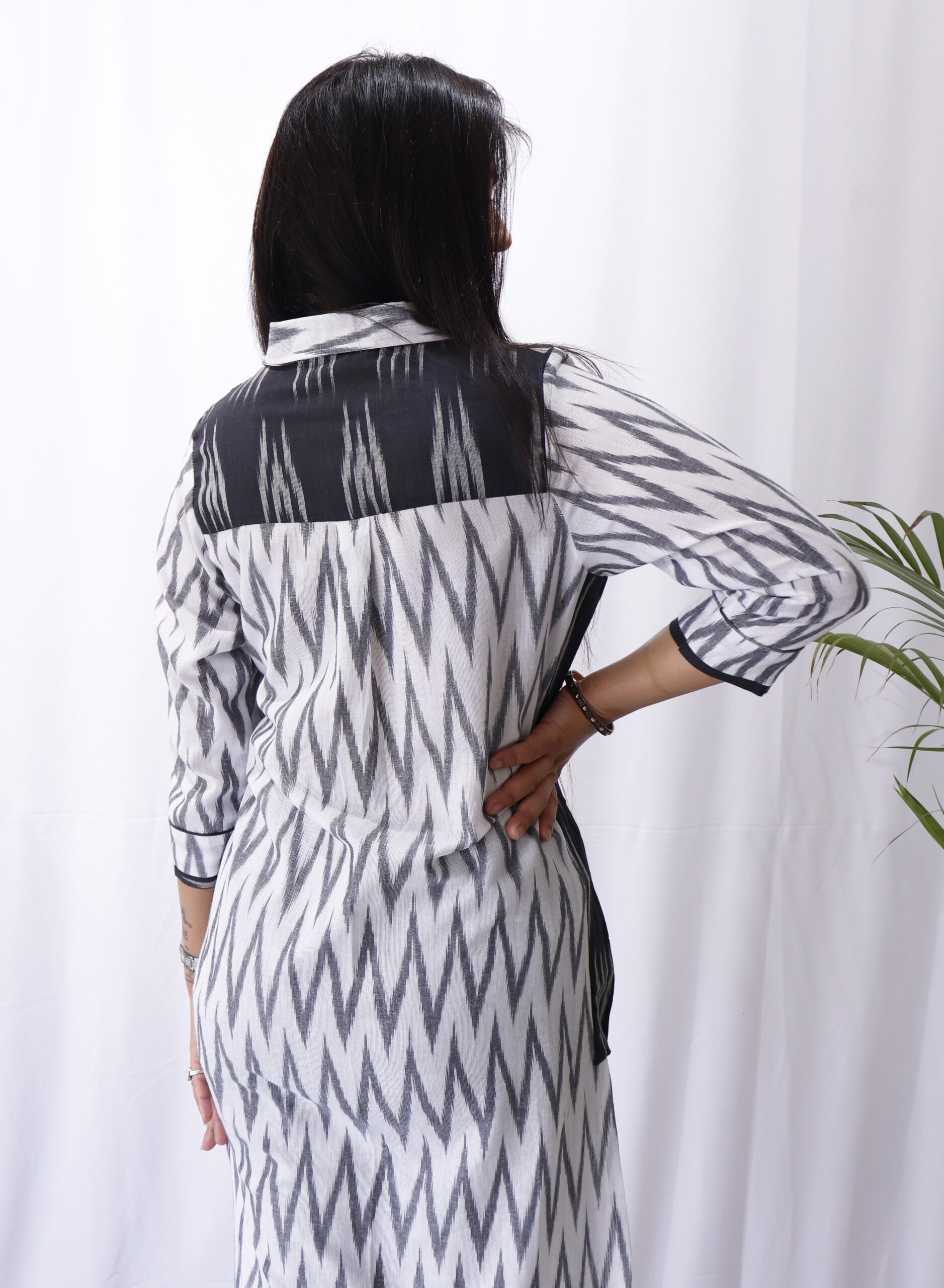 White Ikat Collar Kurta: Embrace Individuality -HS04