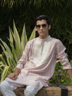 Pink Ikat Kaftan Dress: Elegant Sophistication -HS14